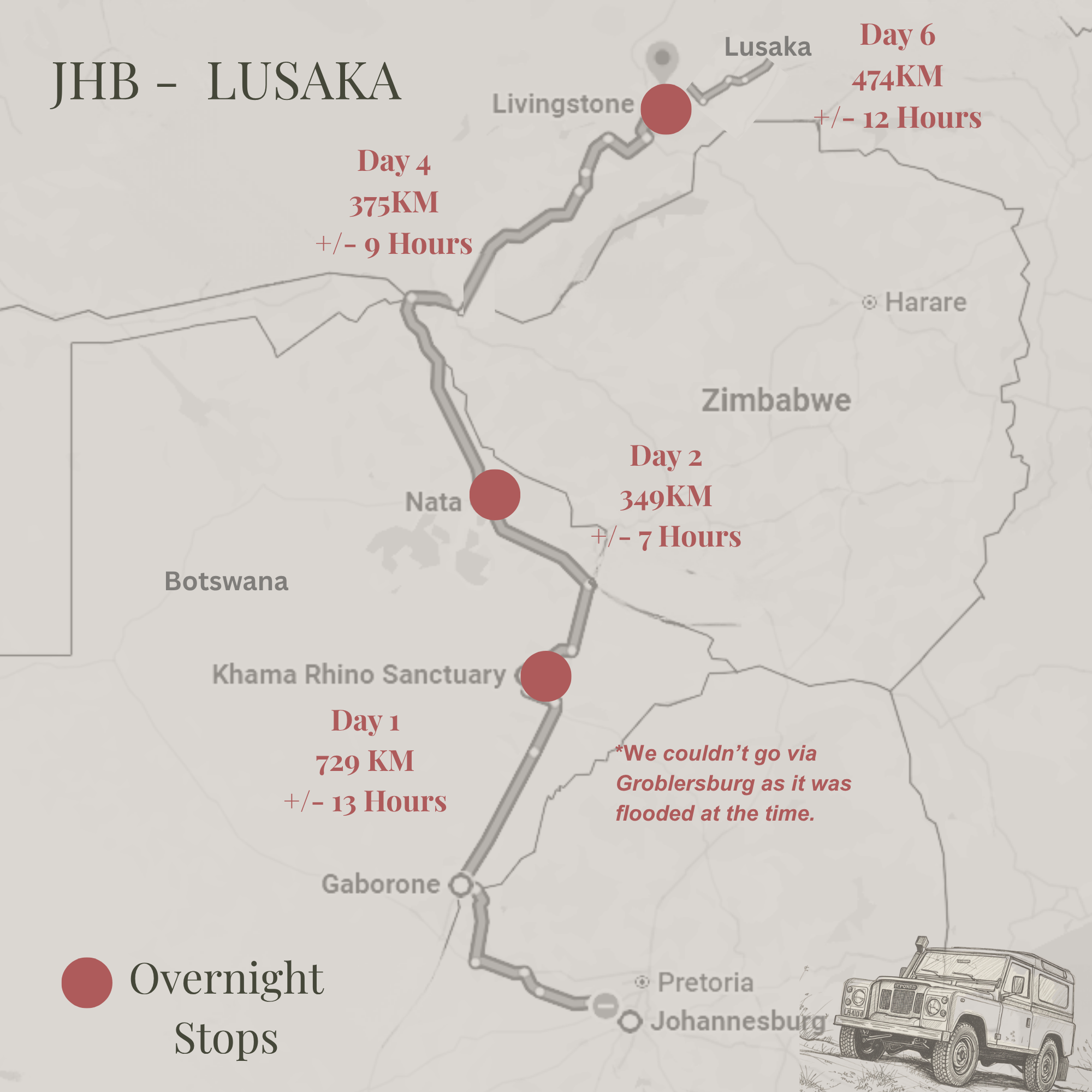 JHB - Lusaka Route Map